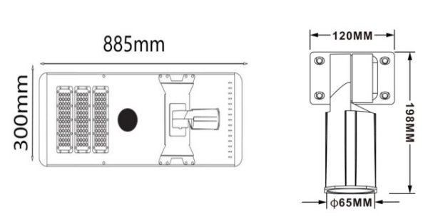 All-in-one Solar LED Street lights SSL-T300B 50W Light Radar control Auto-ON/OFF LiFePO4 Lithium Battery Waterproof Outdoor parks sidewalks roadways gardens poles walkways fences pathways docks lighting